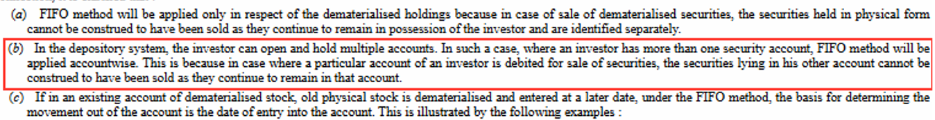 - Efficient tax handling through separate FIFO calculation: As per the ITD circular, First In First Out (FIFO) method shall be followed when you have more than one security in your demat account. You can transfer your long-term holdings to a secondary demat account to ensure your short-term trades aren't affected by FIFO rules during tax filing. FIFO will be applied separately for each demat.