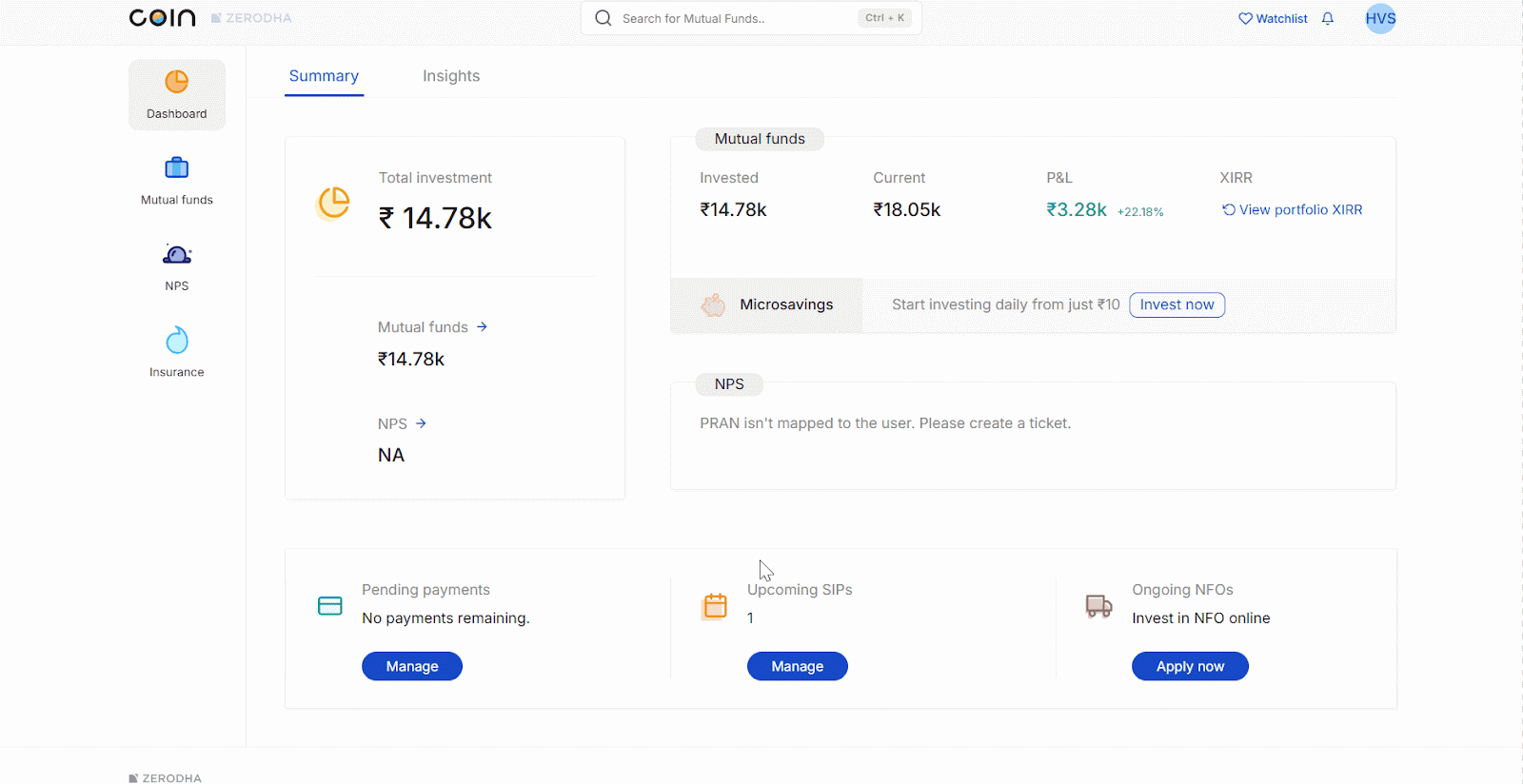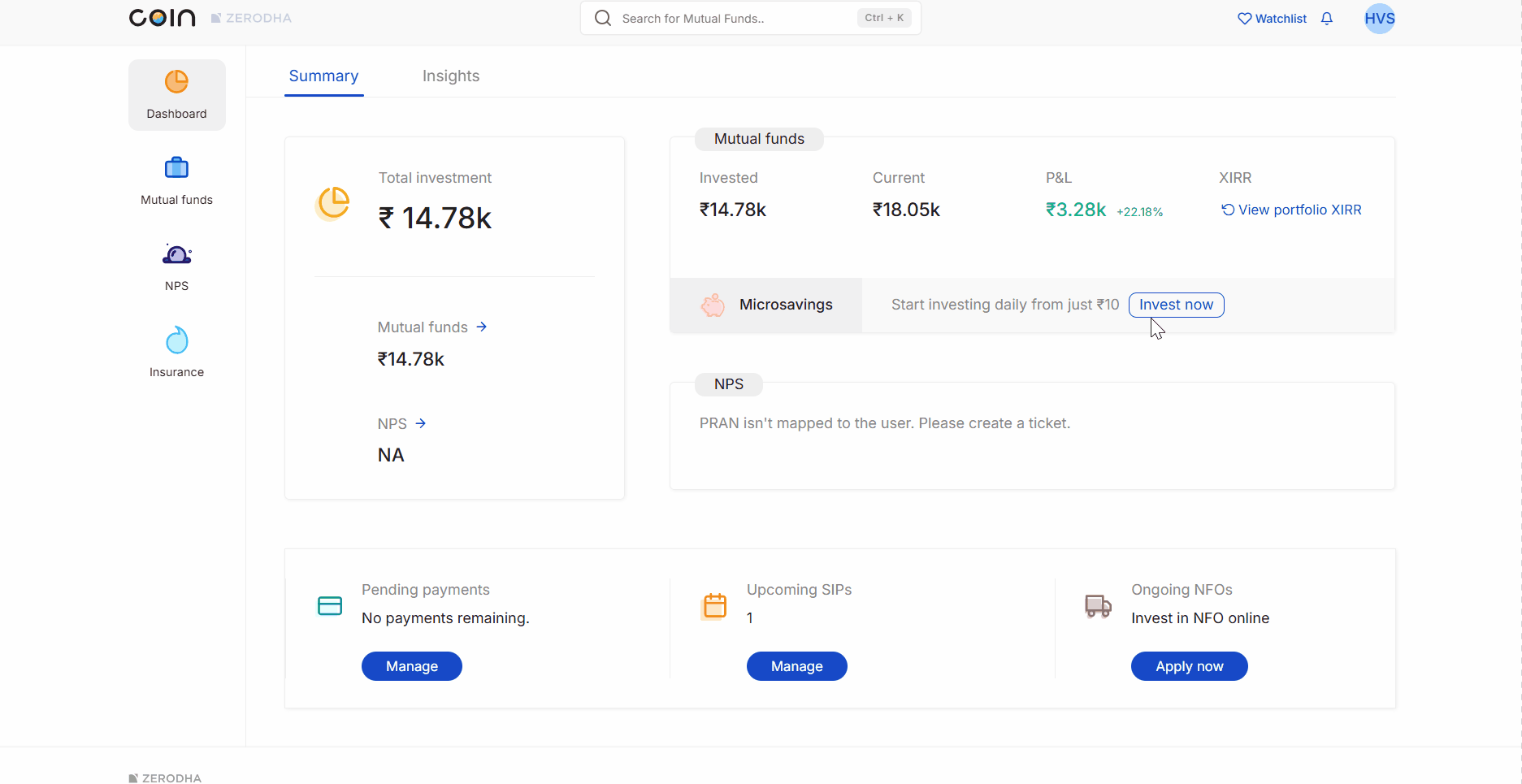 Microsavings on Coin allows you to invest small amounts daily through Micro SIPs. You can invest starting from ₹10 onwards every day, making it easier to build investment discipline with minimal amounts. Currently, you can use microsavings to invest in the Zerodha Nifty Largemidcap 250 Index Fund.