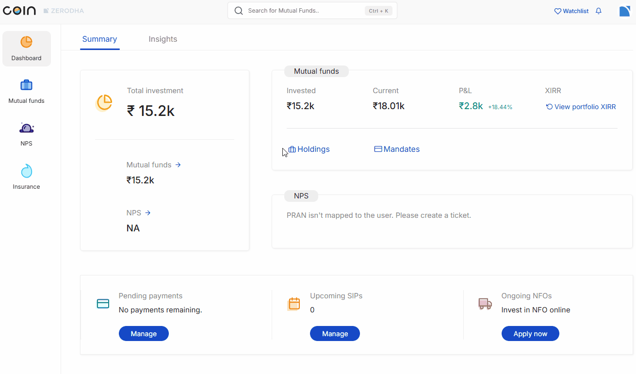 You can view your mutual fund investments through both the Coin app and Coin web platform.