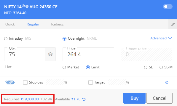When you place basket orders on Kite, you see two types of margin in the basket window: