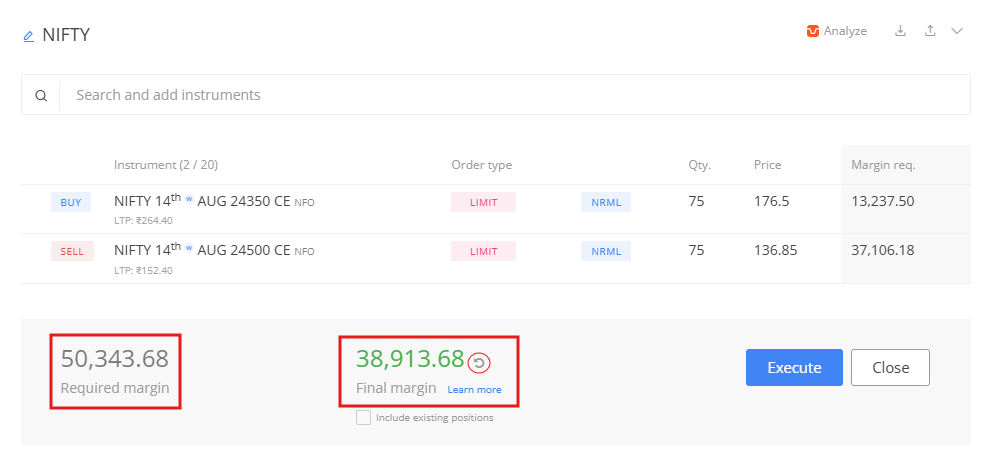 - Final margin refers to the actual funds that get blocked in your Zerodha account after your basket order executes.