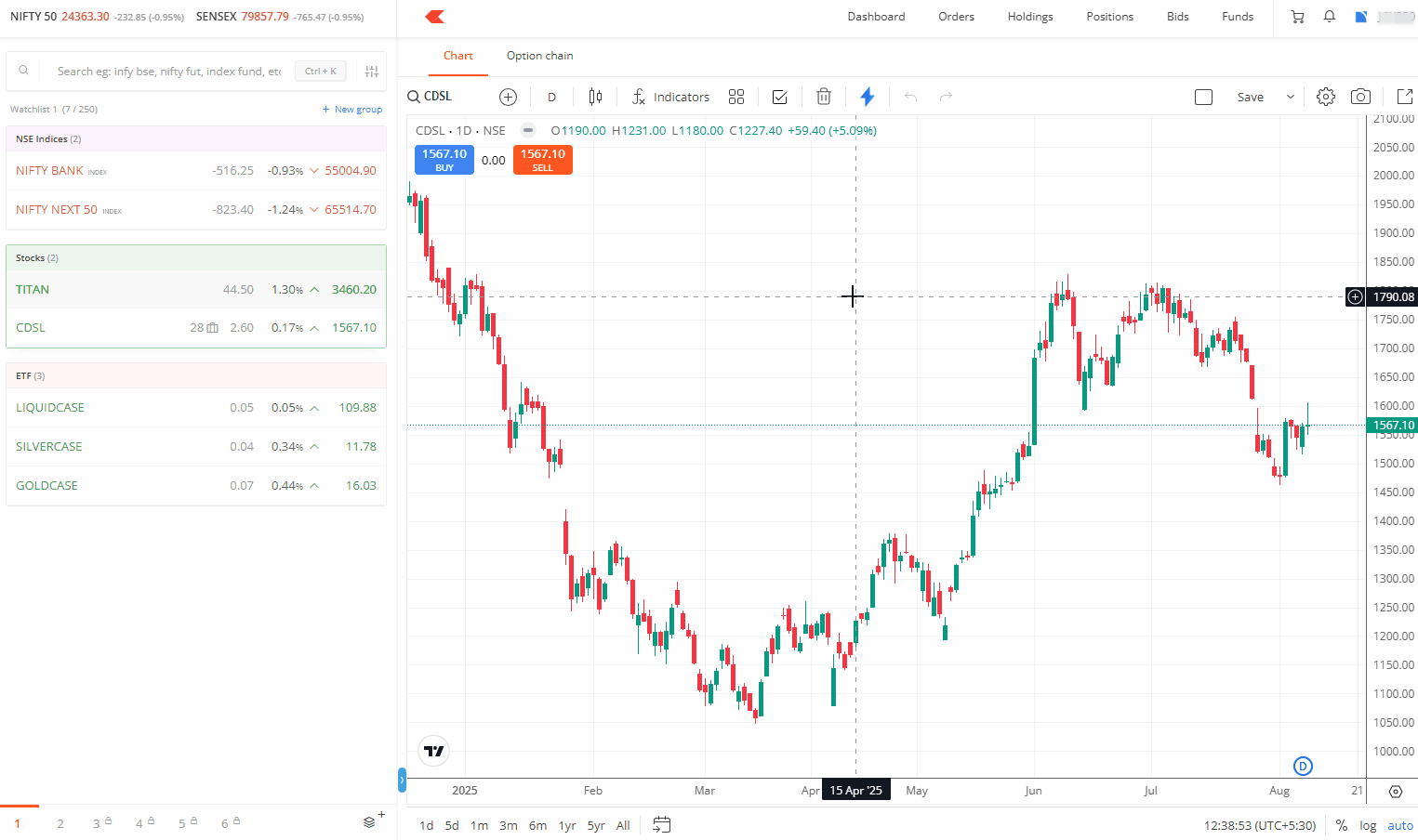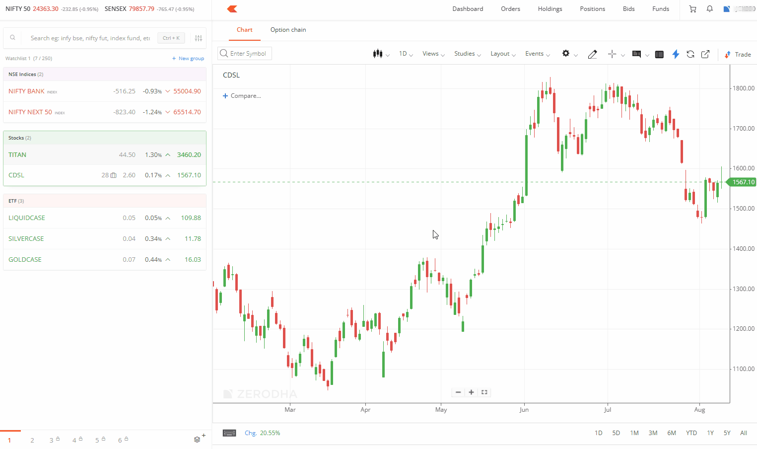 You can customise your chart's candle colours by changing the body, wick, or border colours from the default green and red scheme.