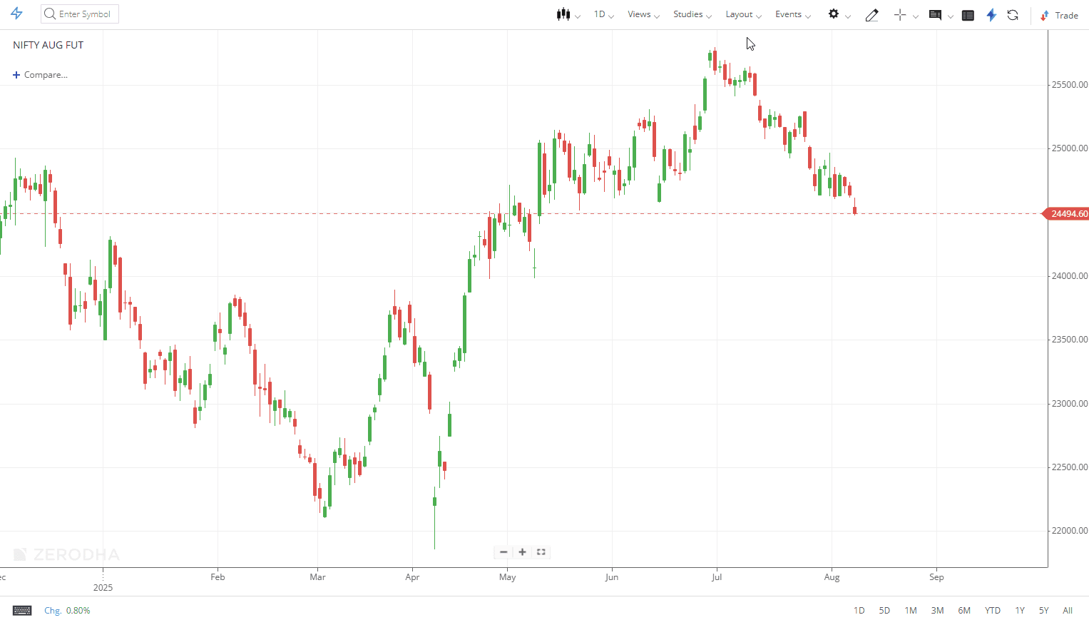 You can view continuous chart data for futures contracts on Kite to analyse longer historical trends beyond the typical three-month contract lifespan.