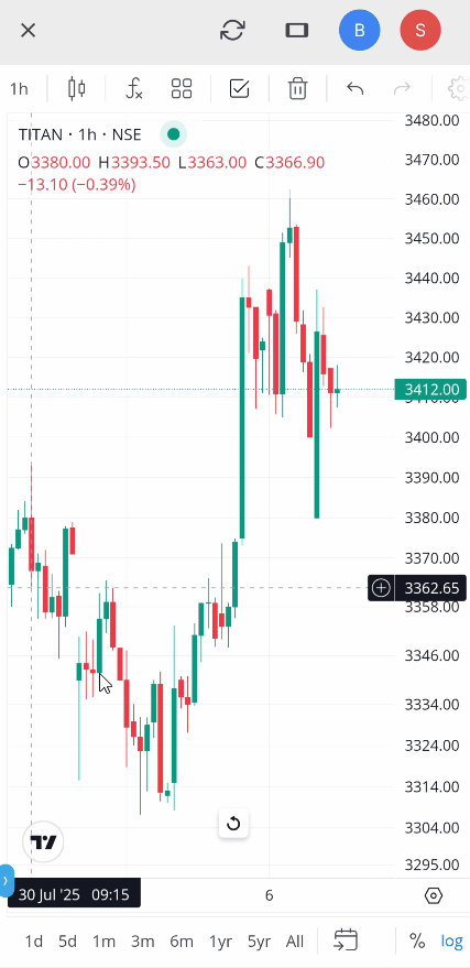 - Open the charts for your desired stock.