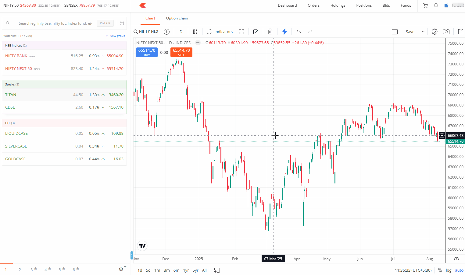 You can change the scales and axis on ChartIQ or TradingView charts.