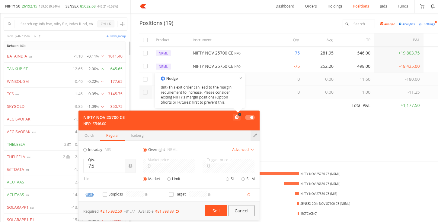 - For F&O positions: Your margin requirement considers any margin benefits from hedged open positions in your portfolio.