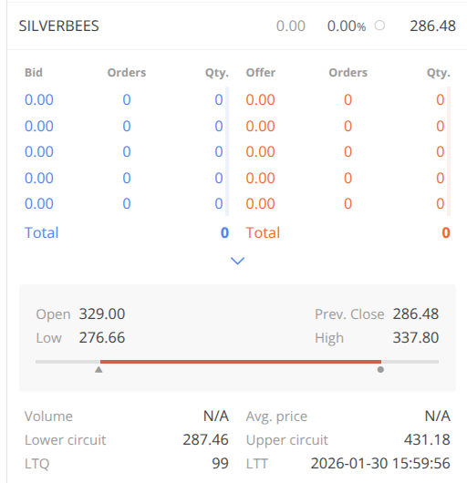 In the case of SILVERBEES ETF, where the lower circuit is ₹287.46, and the LTP is ₹286.48, fresh sell orders below ₹287.46 will be rejected, even if the LTP is trading below that level.