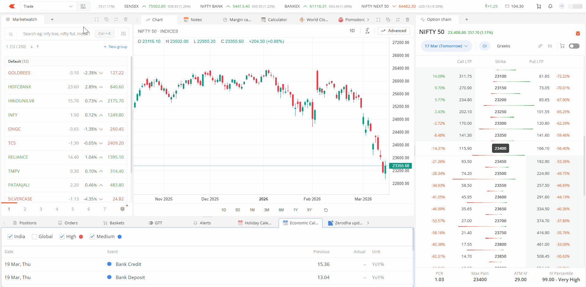 | Economic calendar | Powered by IndiaDataHub, this shows important economic data releases and events in India and other major economies. You can set reminders for upcoming events. |